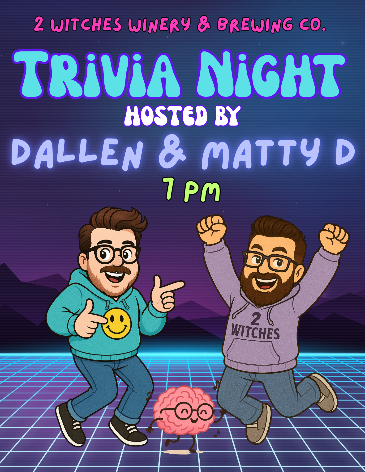 Calling all trivia lovers! Join us for Trivia Night with Matty D & Dallen! Ready to embark on an adventure through different rounds of random facts? Who will be the victor? Gather your smartest friends and head down to 2 Witches for a fun time, cold drinks, some laughs, and challenging trivia rounds! We can't wait to see you!